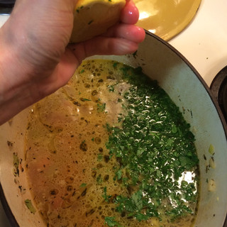 Once the veggies are soft, pour in 1.5-2 cartons of chicken broth (each carton is 4 cups). If you are really fancy, you can make your own deliciously amazing chicken broth using the recipe from my post on roasting a whole chicken. In my opinion, Trader Joe's has the best tasting store-bought broth.